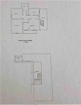 L’accesso all’abitazione avviene tramite scala esterna coperta, che conduce all’appartamento posto al primo piano. Al piano terra sono presenti un portico e una cantina, comodi come spazi accessori, deposito o area di servizio.