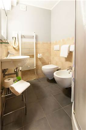 Al piano terra si trova uno spazio utilizzabile come studio o reception. I piani superiori ospitano camere matrimoniali, tutte dotate di climatizzazione, bagno privato con estrattore, infissi nuovi e zanzariere, garantendo comfort e praticità. Le finiture sono buone e gli ambienti risultano moderni e ben mantenuti.