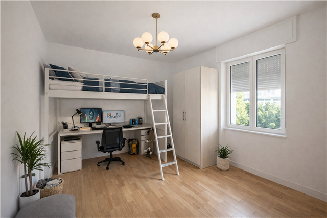 L'appartamento dispone di due camere, una matrimoniale e una singola, perfette per famiglie o per chi cerca uno spazio in più. Il bagno finestrato garantisce luminosità e ventilazione. Tre balconi offrono spazi esterni dove godere del sole e della vista circostante. In aggiunta, una cantina di circa 10 mq al piano seminterrato fornisce ulteriore spazio per riporre i tuoi oggetti.